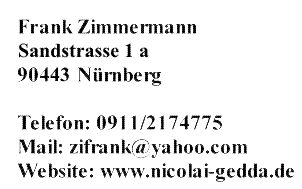 Wenn Sie irgendwelche Anmerkungen, Anregungen, Beschwerden, Fragen oder Hinweise zu dieser Nicolai Gedda Internetseite haben, dann schicken Sie mir doch einfach eine kurze Nachricht. Ich freue mich über jede Rückmeldung.