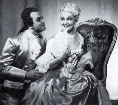 Es folgten in rascher Folge Verpflichtungen nach Paris, nach Deutschland, Schallplattenaufnahmen wie "Faust" unter Cluytens. Mein Kalender war plötzlich voll. Dann hieß es, Walter Legge möchte mit mir fünf Operetten aufnehmen. Das war schon immer mein Traum, er ging nun in Erfüllung. Es kamen drei Strauss-Operetten unter Otto Ackermann "Wiener Blut", "Eine Nacht in Venedig" und "Zigeunerbaron" heraus, dann "Die Fledermaus" unter Karajan, mit Elisabeth Schwarzkopf und Erich Kunz. Meine Liebe zur Wiener Operette kann ich darauf zurückführen, daß ich als junger Mann für diese "Tauber-Stimmen" schwärmte. |